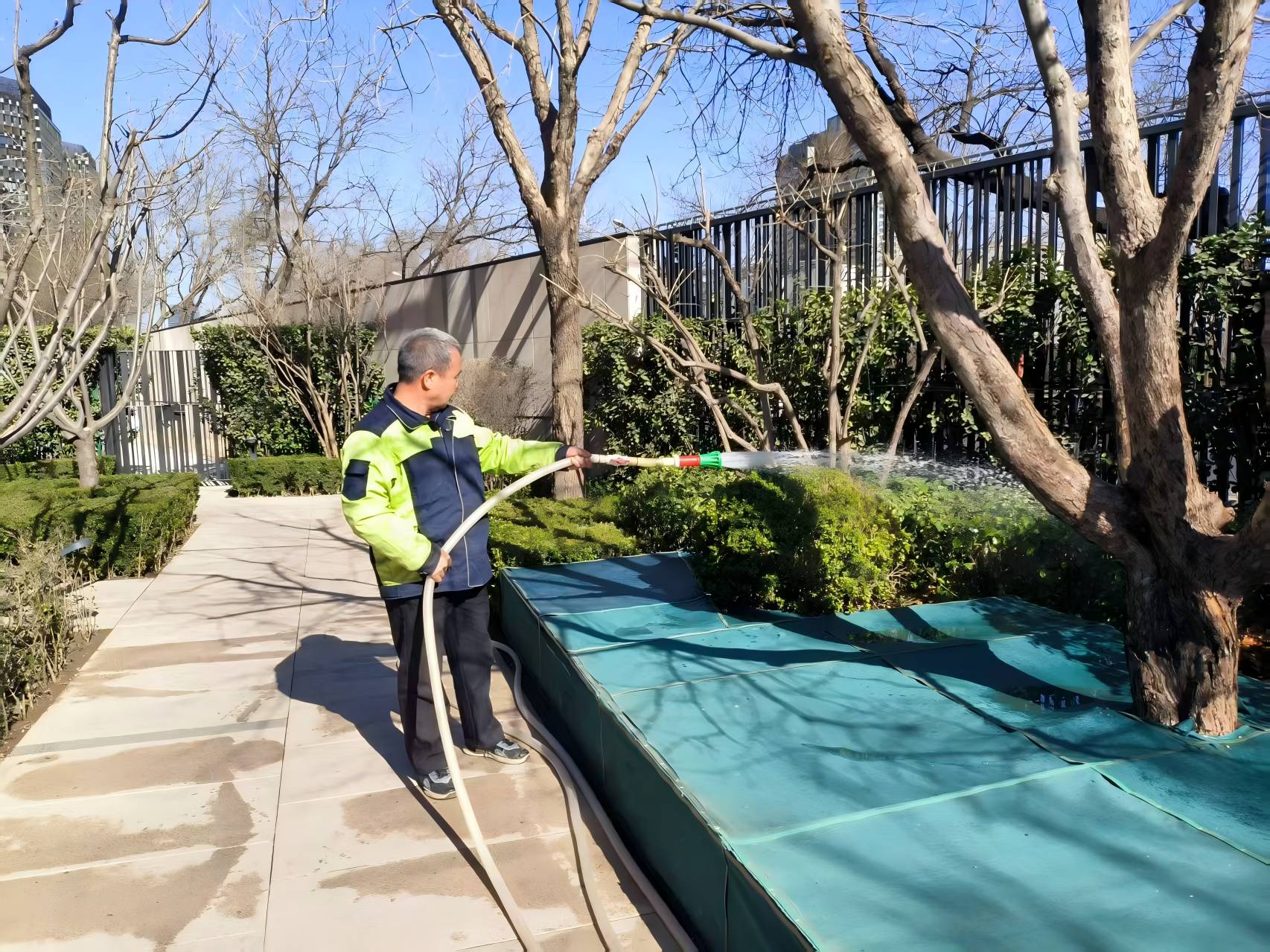 松土除草:春秋季隨著氣溫回落,土囊環境慢慢凍解,應隨時開展松土,程度約為 5-10 mm,以改善土囊環境通氣性,促進會綠色植被根莖生張。時候,要隨時清理除草,防止除草與景觀園林綠色植被爭霸營養物質、水分侵入和光照。除草可選擇人工處理撥除或電學除草的做法,但需目光電學解毒劑的便用很安全,防止對綠色植被容易造成影響。